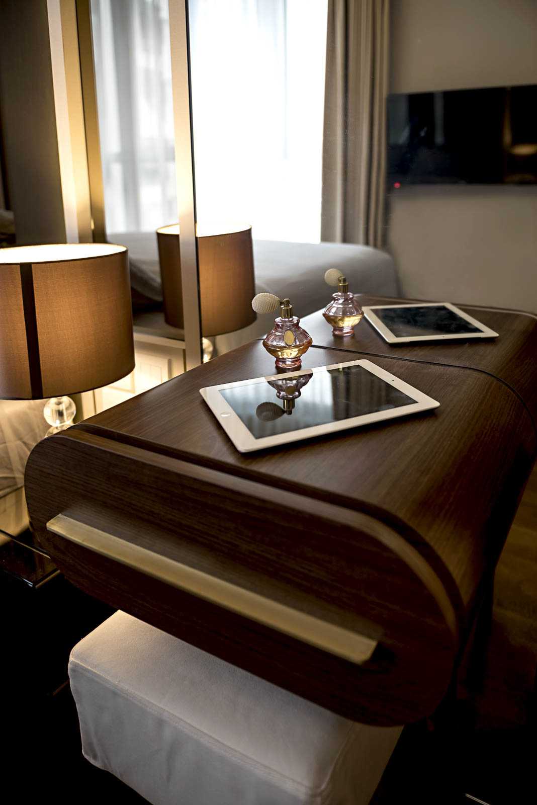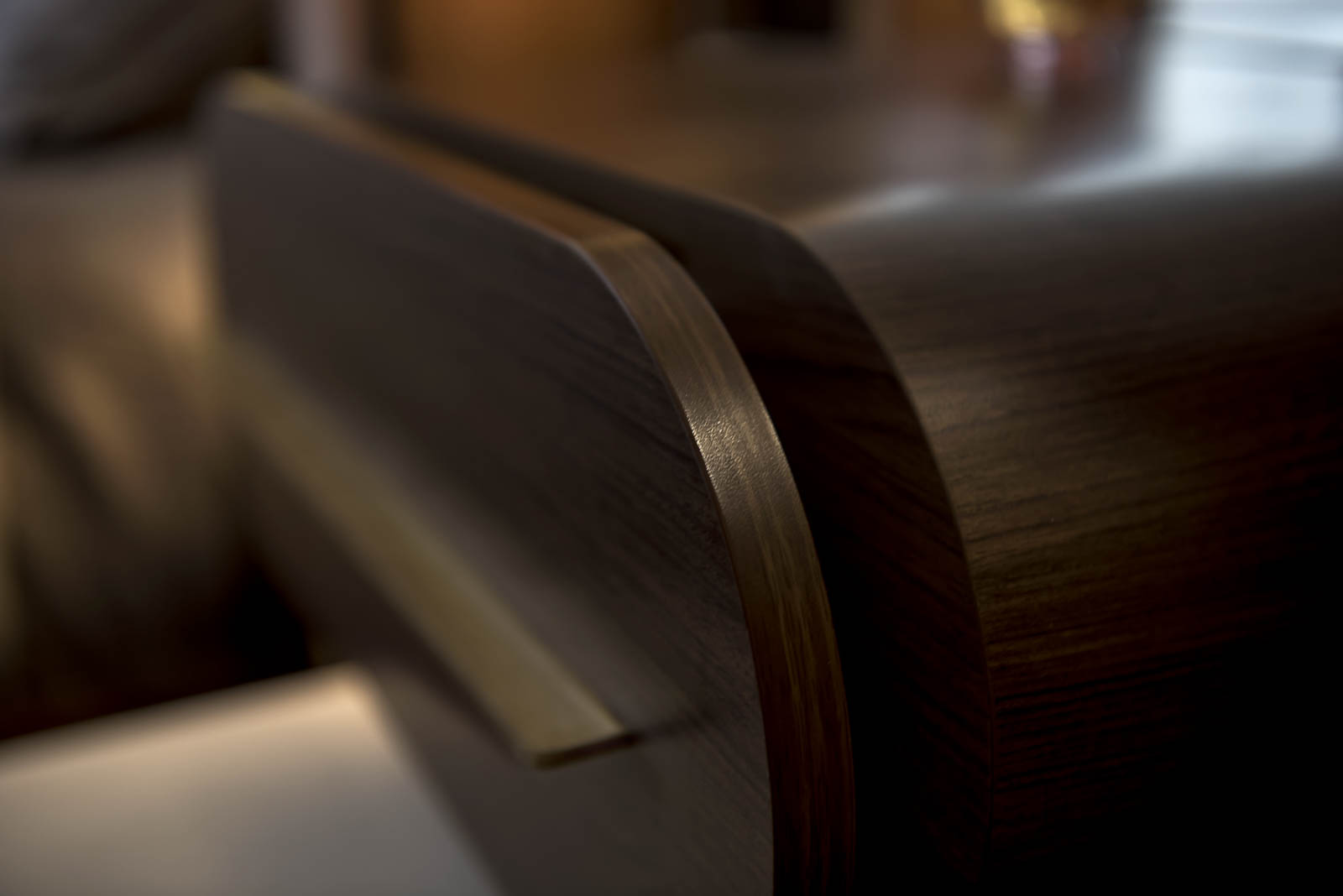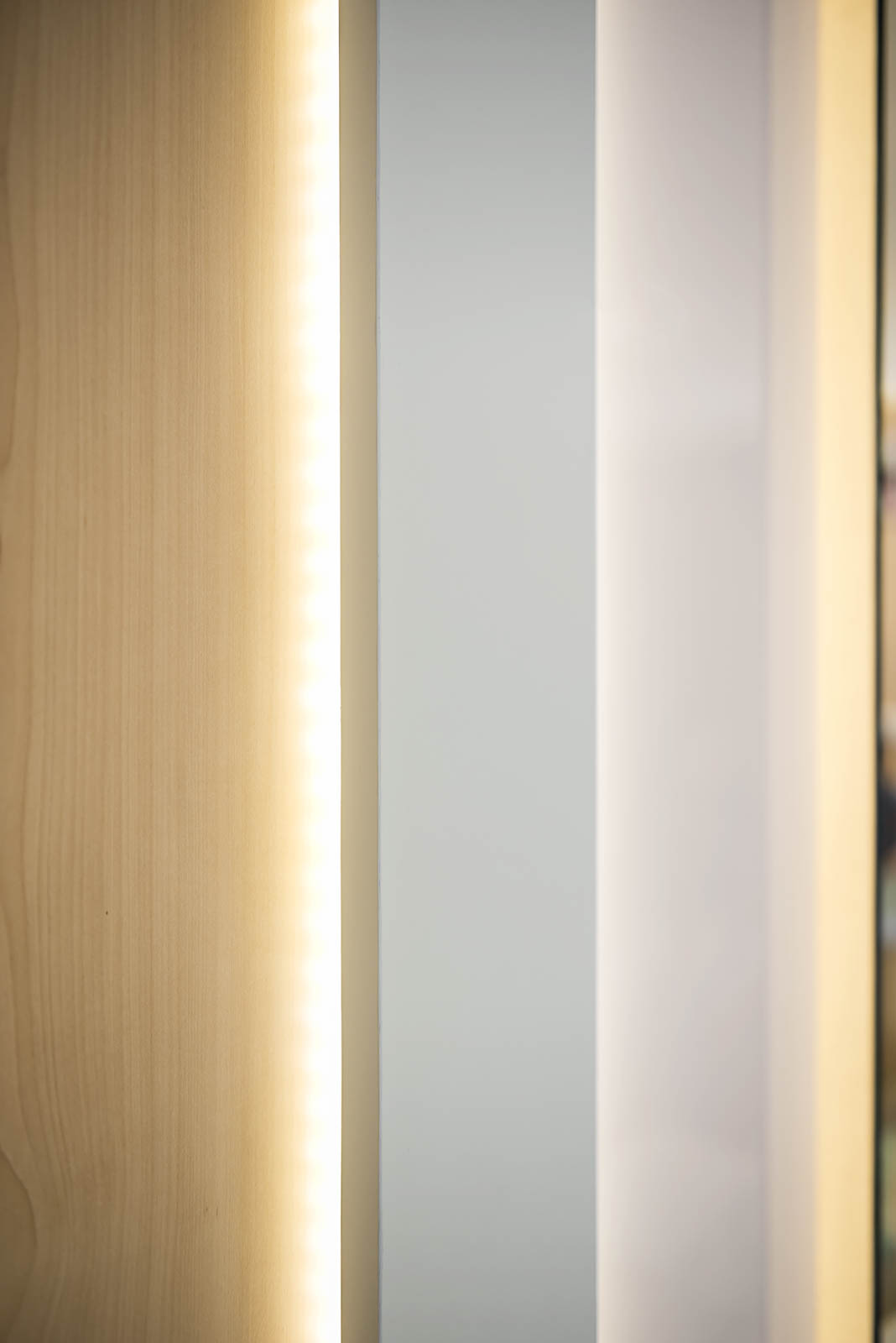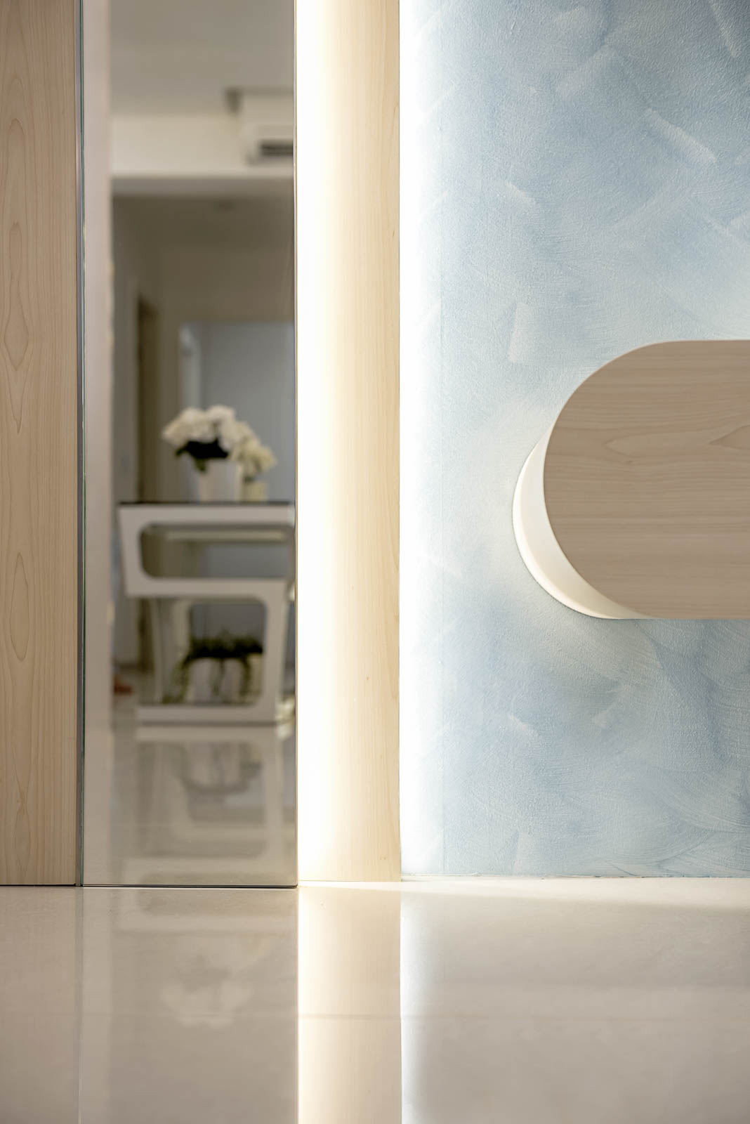 Biggest challenge of this project comes from unifying the couple's different aesthetics preferences. Yet what's beautiful in the design process comes from sieving out their common loves to create this union. Both love blue, light timber, spaciousness and mood lighting. Layered vertical panels clad in mirror, timber, white and blue laminates sets the tone for the living and dining room while we see the same verticality carried through to the master bedroom with a a richer material palette of browns and brass to give that luxurious mood that both enjoy.