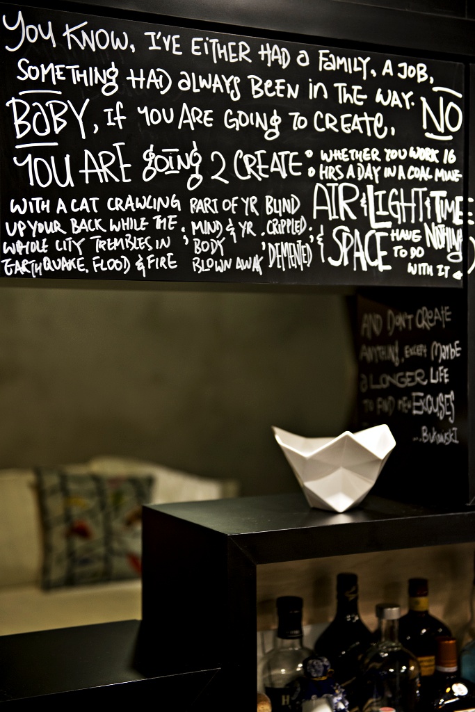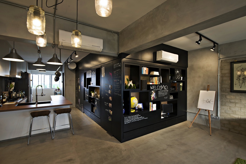 We were very honoured to be commissioned by a very cool couple who gave us free hand to design their love nest. The whole design process was interactive and very enjoyable. We love how bits and pieces of the client's personalities and interests were interwoven into the design concept and details. Definitely loving how the client is using the space now! Look at all those heart warming messages, quotations and doodling on the blackboard walls. Definitely bring smiles to us when we went for the photo shoot.